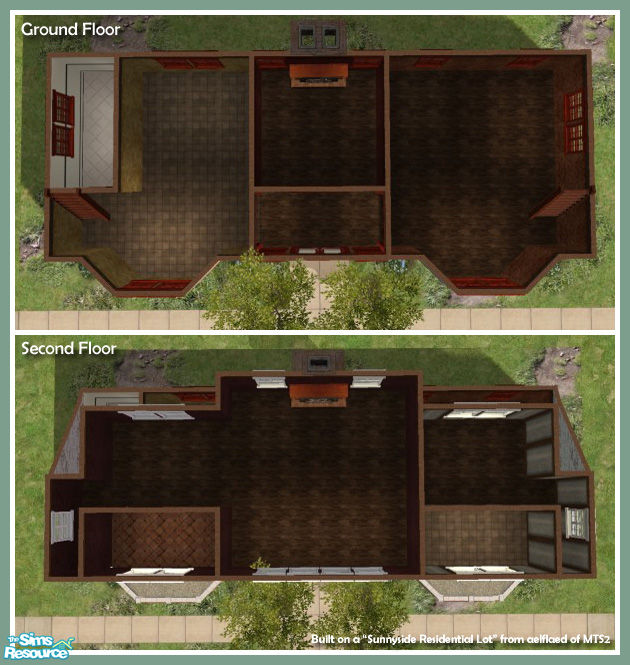 A tiny home on a very tiny lot! This aged and modest dwelling sits on a mere 2x1 lot. It has an eat-in kitchen, study, living room, two bedrooms, and three bathrooms.<br><br>Base game compatible!