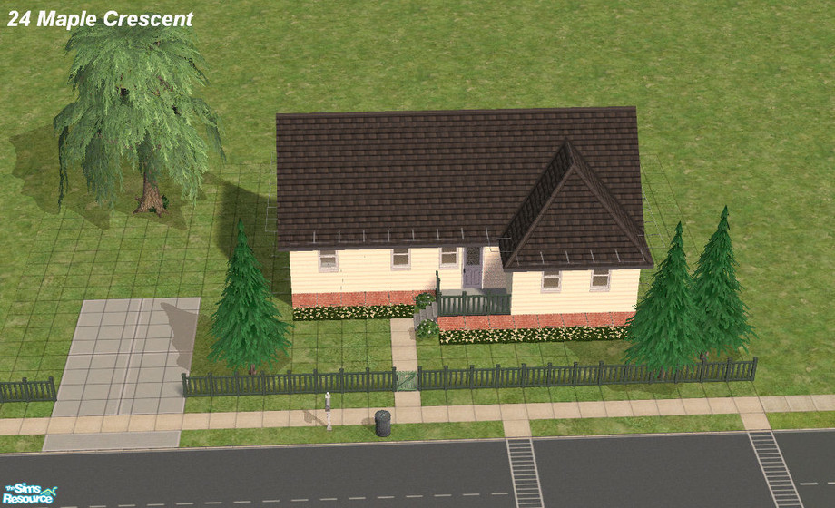 This bungalow sittuated on a lot with mature trees, includes a deck and small porch. The home has one bedroom, one bathroom and an open concept floorplan in the living room and kitchen area. It is an ideal starter home for your sim!