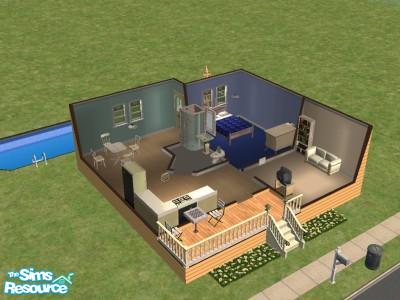 This starter lot has 1 bedroom, 1 bathroom and a swimming pool. All Maxis content.