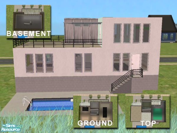 Modern 1 bedroom starter house on small lot. Features a small pool and a spacious deck with a daylight basement. Unfurnished, but under 20K simoleons!