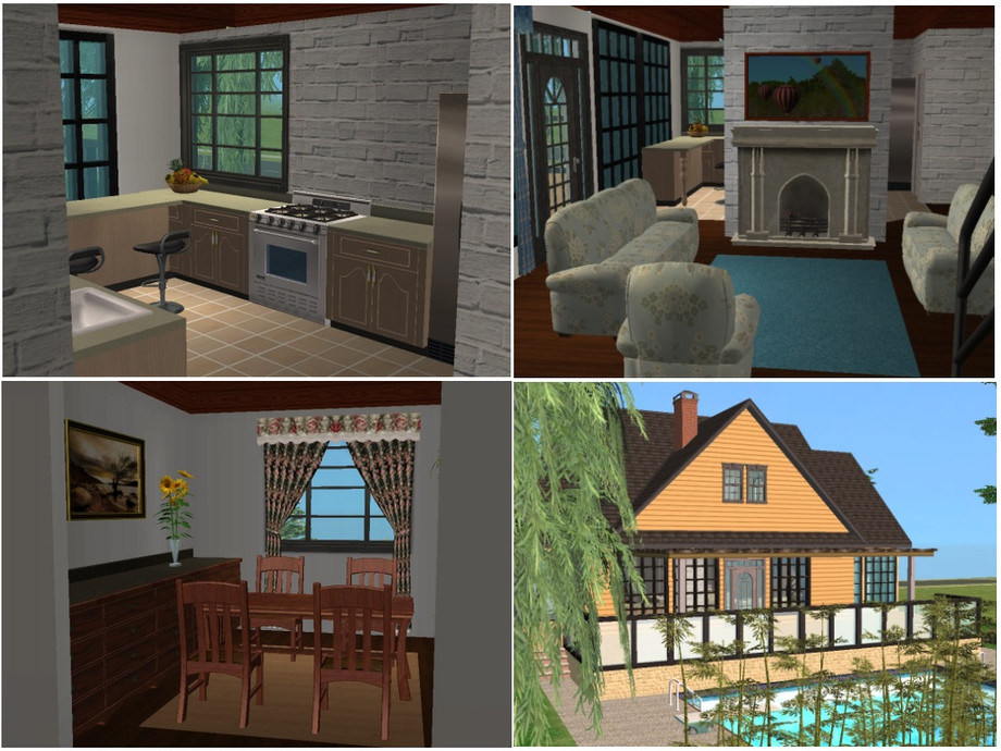 Here is a cozy family home with pool with 4 bedrooms, 3 baths, eat-in kitchen, formal dining, and covered deck. Two bedrooms are on the ground floor and two upstairs, all spacious. The house has some furniture for staging. This house is a special request for charlottenics! Base Game Lot!