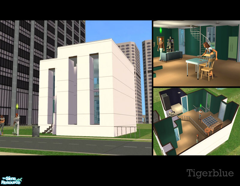 A simple starter with lots of potential. It has a pre-dug daylit basement; just add stairs and windows when funds allow! There\'s loads of room in which to expand. At present, there is a mezzanine floor which holds the bedroom. *Maxis Content Only*