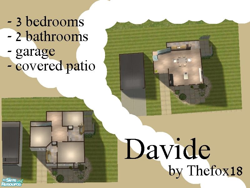 davide has 3 bedrooms,2 bathrooms,garage,covered patio