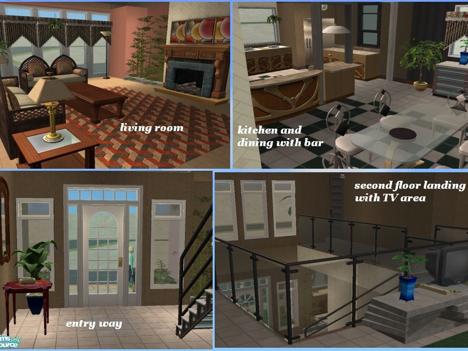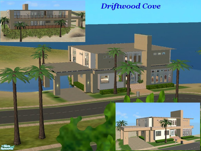 Earth tone walls make this modern beach house blend into it\'s sandy surroundings. If you place the house in Driftwood right on the edge of the water you will get the feeling of being on the sand with just your base game. The lot is small; the house is spacious with 4 bedrooms and large living area.