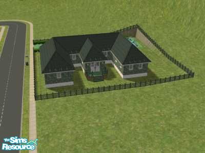 A house done in green. Mostly base game/expansion pack content except for the carpeting, pool lights and invisible driveway. No landscaping on the lot. I\'ve listed all the packs I have but as in my other houses, you may not need all of them to use the house in your game. Hope you enjoy it.