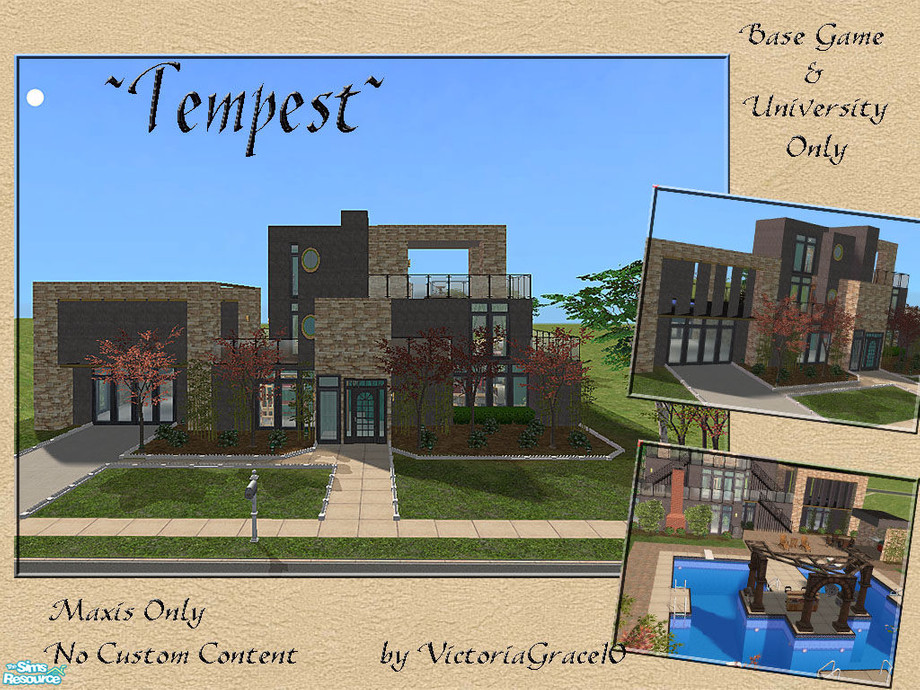 Simply delicious is one way to describe this elegant piece of real estate ready for your Sims to move in. 2nd floor roof top hot tub with breezeway, top floor music room. Multi level decks, patio\'s and fully landscaped. Bar in the middle of the pool, plenty of room for entertaining. EP ready garage.