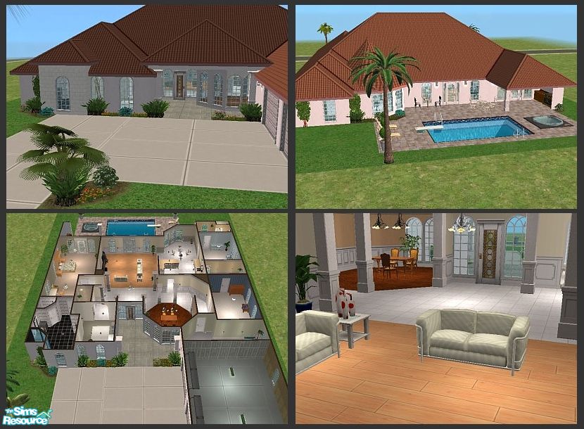 This Mediterranean style bungalow will please any Sim looking for space & comfort..Features a unique open-concept plan with octagonal center hall, large principle rooms, study & spacious bedrooms each with its own bathroom. The property includes manicured gardens, pool, hot tub & sprawling patios.