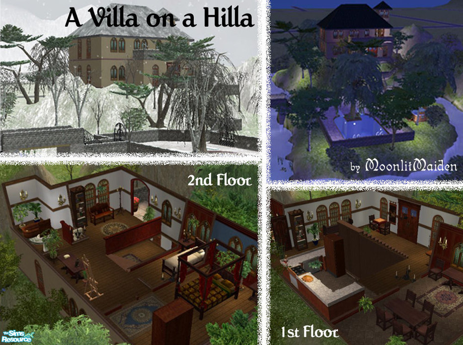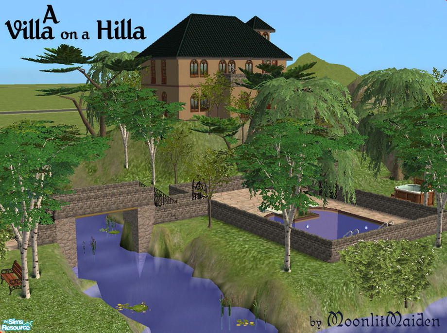 A secluded retreat with an Old World flavor. Your Sims will enjoy all the modern amenities while they commune with nature in this elegant 2-story villa perched high atop a lushly wooded 5x5 lot. Large kitchen, dining room, master and single bedrooms, 1 1/2 baths, plus hot tub and large pool area.