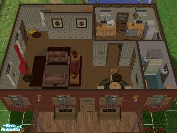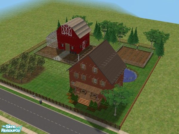 Two bedroom, two bathroom, farm house dwellingwith extra attic bedroom for guests or children on smaller third story. Fully furnished within. Barn and greenhouse in back. Also includes fruit tree orchard and garden plots for farming.All Maxis content. Special thanks to Tiko for his 'gambrel roofs' tutorial.