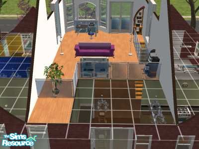 This is a 2 Bed 1 Bath Modern style house with the lounge on the second floor,Maxis contents only apart from the stairs.