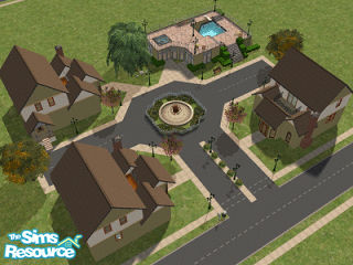 Neighborhood within a neighborhood. 3-1bdrm, 1bath 2 story houses with functional basements and gym where my sims can watch the swimmers when they are on the treadmill. Only 1 house is furnished. This is my 1st upload to this site, hope you enjoy.