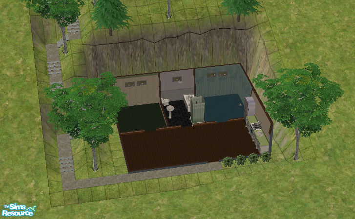 A bit of a bunker-like house for the very shy sim. Stairs down to the entrance on the back and trees to keep the nosy neighbours guessing.