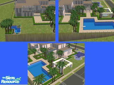 The second installment in my modern line. Trellis balconies and decks lend a beauty to this house which none can compare. Archways surround the fountain which is next to the flowered pool. Archways by Kiri. Let the night come around and this house's walkways light up for a spectacular view.
