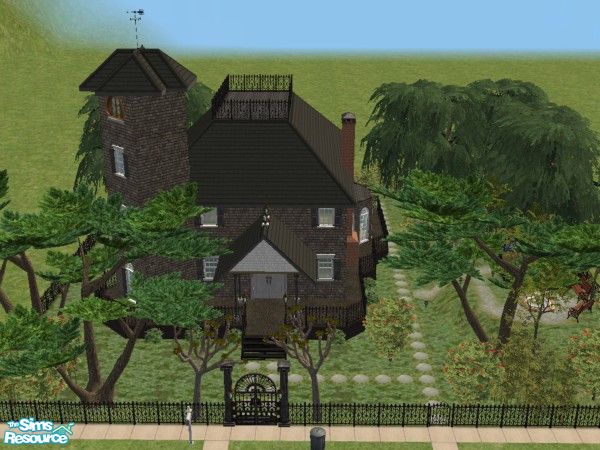 I based this one on an image of a toy Addams family house I found while surfing. Thanks to windkeeper for the weathervanes and hassle-free garden, and to TSRAA!