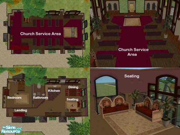 If your sims are lacking community spirit, then why not place this decorative church with beautiful gardens into your neighbourhood (includes living quaters)
