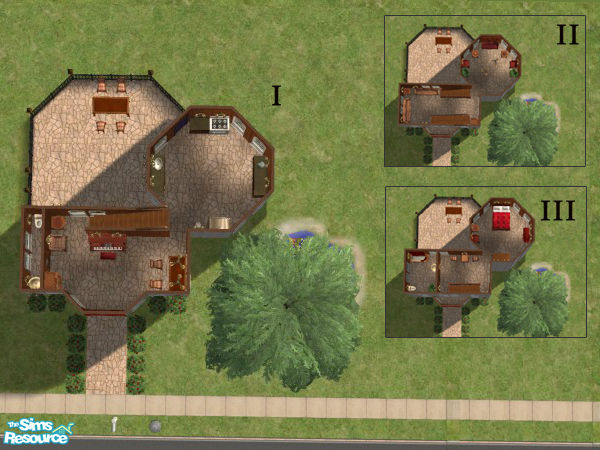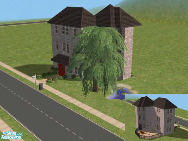 Based on a small castle/keep in France. Suitable for a Sim couple. Floor I: Kitchen, guest bathroom, dining area. Floor II: Reading area, living room. Floor III: Master bedroom suite. Plenty of land for additions.