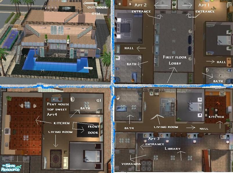2 drive ways, 4 apartments, 3 lobbys, 1 swimming pool, out door roof top gym, 1 library, 2 giant verrandas, furnished enjoy :)