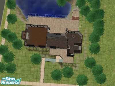 This spacious and unique 3-story home sits on the edge of a cliff overlooking a lake and is surrounded by forest. And its priced very affordably! Outside walls by Deathkat64. Maxis base game