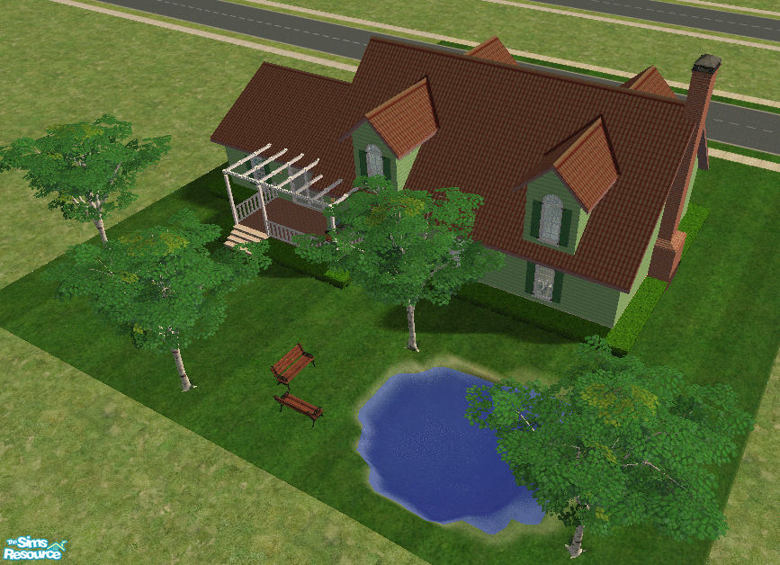 A rustic, typical american house in the residental zone. It has on the back side a wooden foundation with a white, wooden frame and a bbq. The garden has a pond and two wooden benches. there\'s also a basement, that you can furnish as you want. Please leave a comment behind, and say what you think.