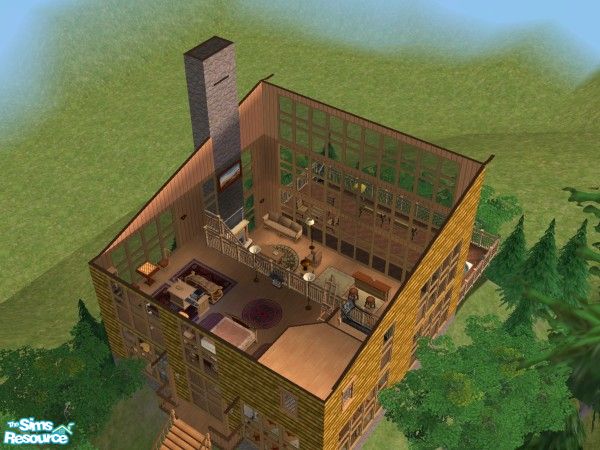 Grandview Lodge is a 2 BR, 2 bath log home that looks best in a lot overlooking your Sims neigborhood. Your Sims will enjoy the loft style master bedroom suite, a deck, and the views through 3 stories of windows from the loft and living room. Thank you to the TSR artists whose work is featured here.