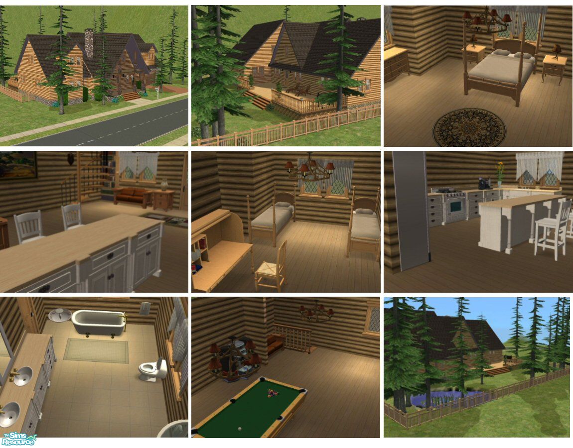 Lovely log cabin for your sims. 2 bed + 2 bath with large deck out back for entertaining. Unfurnished version. Enjoy.
