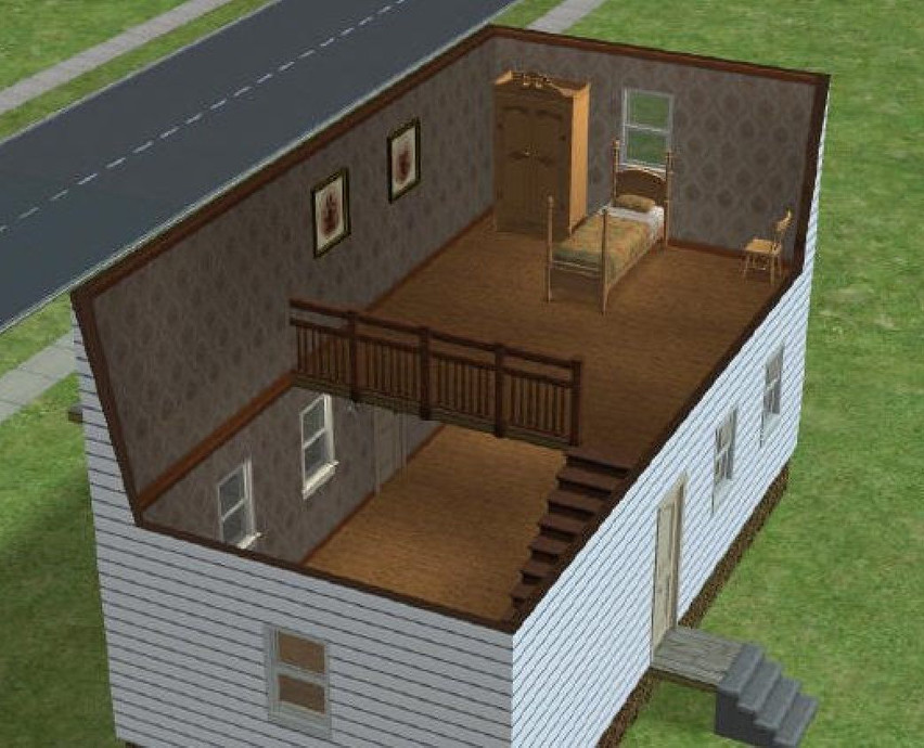 This very old farm house, sitting in a Girl Scout camp here in New England, is said by the locals to be haunted by 2 small children. No one has been allowed in due to rotted wood, so I just guessed from the outside of it and brought it up to code for our Sims. Actual pics are available if interested.