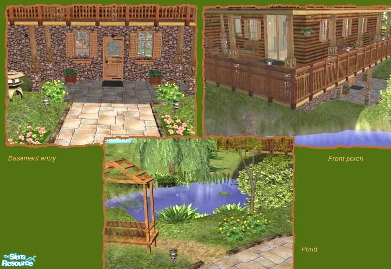 This lovely mountain home has 2 bdrms and 3 baths. It features a sunken kitchen, basement game room, and an upstairs office & TV area. Beautiful grounds with paths, porches and a pond. Fully furnished. NO mosquitoes! All Maxis & TSRAA. SEE INSTALLATION INSTRUCTIONS!