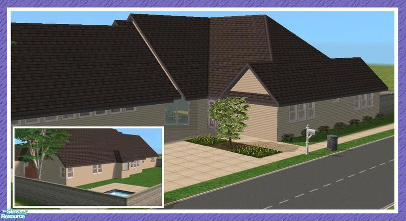 Sims 2 — Hometown USA 03 by TKayO — Base game compatible. Pool. Large master suite. Garage space included--if you have an