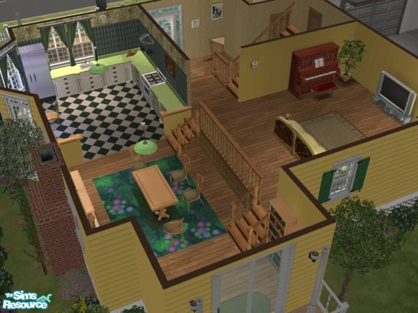 Spacious home. Three bedrooms, 2-1/2 bathrooms, kitchen, living room, large game room above the attached garage. Basement and attic so you have plenty of room for reward objects or all those things your sims demand. OFB stages used for raised porch, living room, and game room.