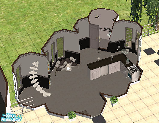 Unusual house with a pool, enough room for one. (or two people at a push-as there is room for a double bed upstairs.) I have only part furnished, as I think people have their own taste when it comes to furnishings. These great stairs are from a great creator on Mod the Sims