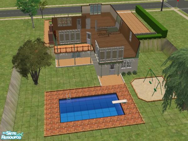 Two level, 3 BR/2 BA Ranch with useable, walkout basement. Optional 4th BR or great area for gym or hobby area. Landscaped and decorated. Unfurnished. No hacks or custom content, all Maxis items.