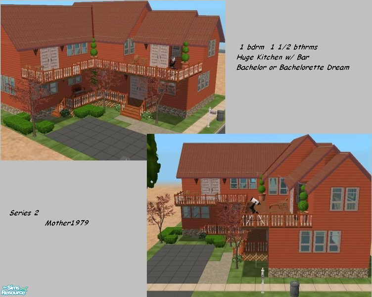 This is a 2x2 lot.This home has 1bdrm,1.5bth,huge eat-in kitchen w/bar,living rm,tv rm,security & driveway.Sitting on porches.Home is meant for 1/just a couple.All Maxis content & no hacks. Please rate & Enjoy.