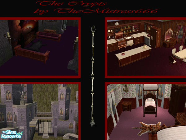 Spooky Castle. Fully finished windowless basement Crypt for your Vampire Sims to hid away in the daytime. But also fully furnished on the first floor with everything a regular family will need! top floor unfurnished for you to make bathrooms and extra bedrooms