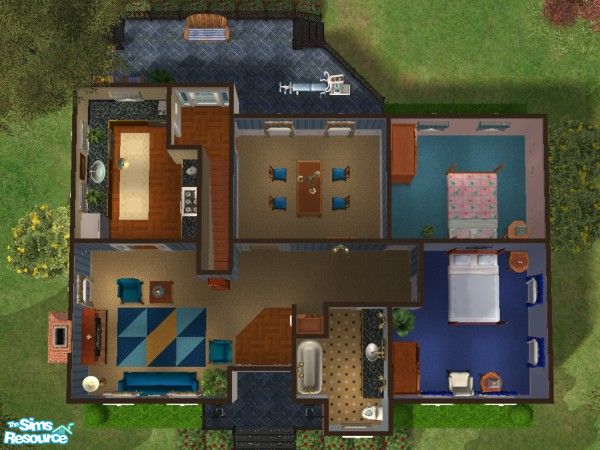 Reminiscent of a French country cottage, this charming ranch offers many amenities for the advancing Sim. The floor plan features a living room, dining room, kitchen, 2 bedrooms, 1 bath and a basement with furnished rec room and 2nd bath. Built with Maxis content only. Game tested; Sim approved! ~See My Screenshots for more pictures of this home~