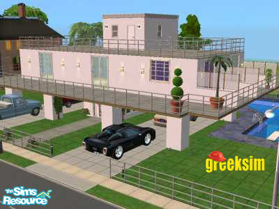 A family house with a garage-basement which has room for 4 cars. At the back yard there is a swimming pool and room for bbq if your sims wish. 2 bedrooms with private balconies in wich you can place your telescope and spy on your neighbours!