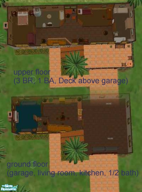 A fun villa decorated in warm colors. Features 3 bedrooms, an entrance on the second story, and a one-car garage. Landscaped a bit as well. Filled with TSRAA items and decor (I recommend using Clean Installer to install this.)