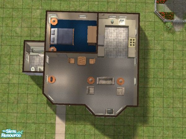 Starter home (Under 20k) - With 1 bedroom and 1 bathroom, this home would be good for your college sims, or elderly, retired Sims. Features a nice sized kitchen and living room. Also features a landscaped covered patio in the back yard. (Room for a grill and eating area!)
