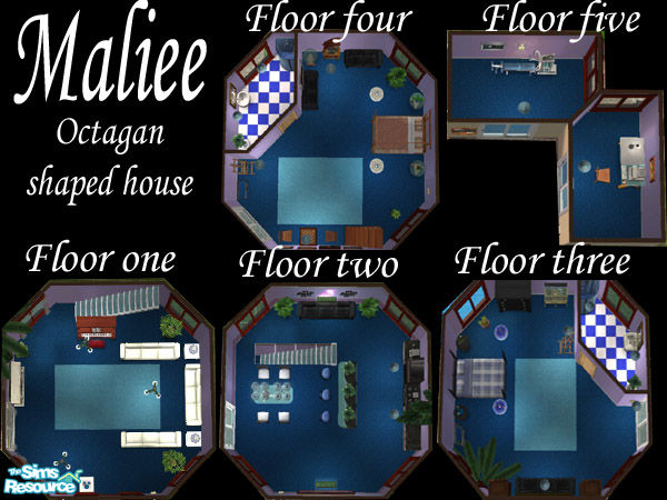 a octagan shape house that leans over the side, in all different dirctions, the house house has five floors with a different room on each floor, an it has a outside balcony with staircase leading to each room