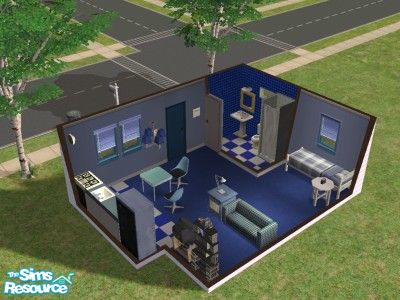 For your typical bachelor, here is a typical blue and white furnished bachelor pad.
