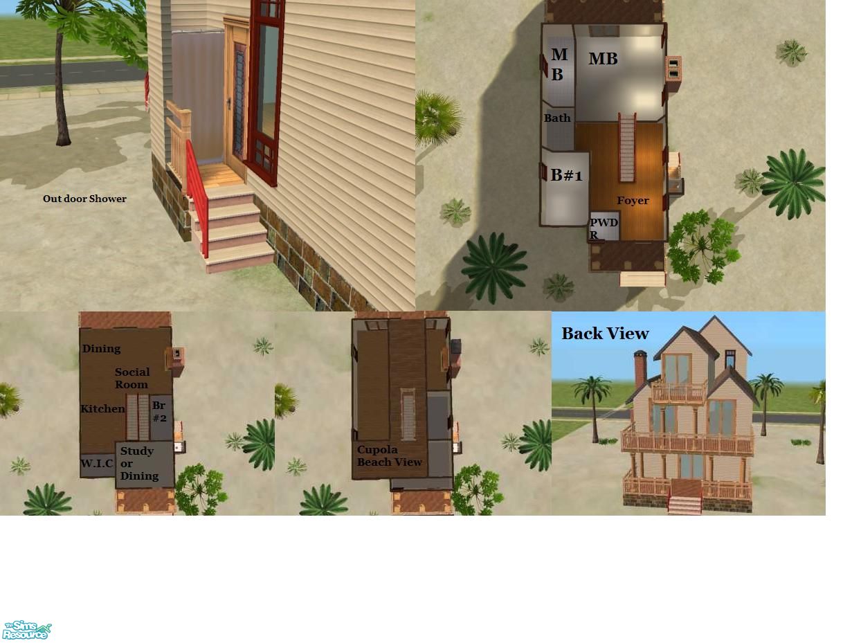 Another Beach House I made. No custom content except for walls, and comes with an outdoor shower! Look at pictures :) Enjoy! :D