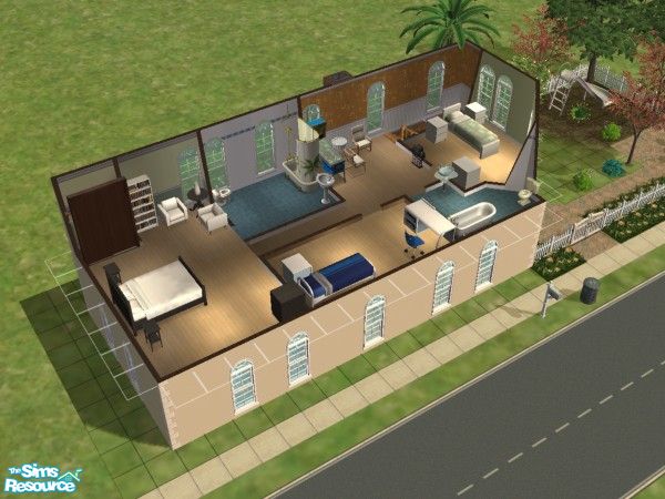 This is a neat house modeled after something from the Midwest. It is quite simple looking on the outside with a nice garden and slide for the little sims. It is also very spacious inside with three large bedrooms and 3 baths and a small gameroom. This is the perfect house for a small family.