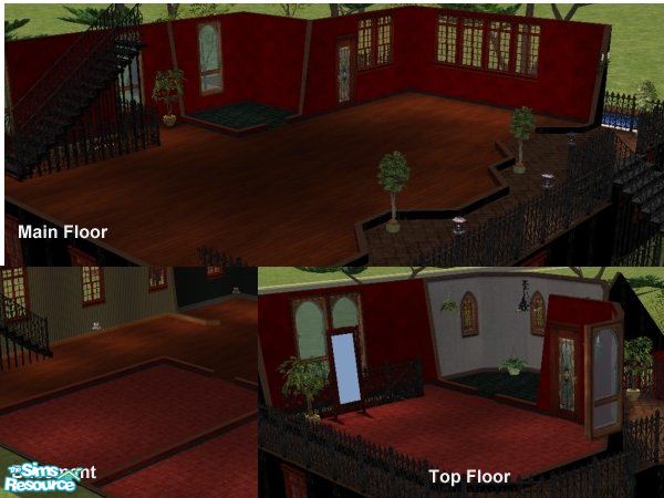 Neighbourhood haunted house, or gorgeous goth home? Credit for two walls to Lorah and holeladra, also includes one additional (black brick) custom exterior wall. Natural window lighting in the basement.