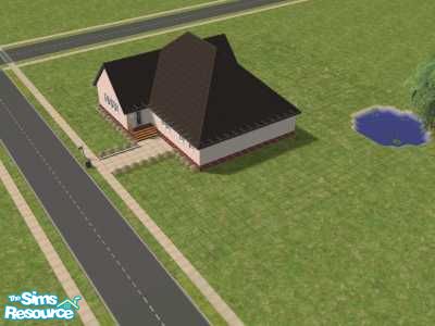 This home is inspired by the homes in my neighborhood. It boasts an eat in kitchen, and a wonderful pond under the willow tree, where I love to hold Sim weddings!