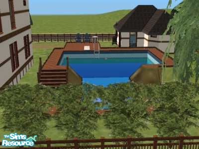 A nice house for a family,(I use it for my Brother's sim family) Has a raised pool guest/pool house with bathroom, and deep pond in backyard.The room on the second floor is furnished as an office but can easily be changed into a bedroom with a connecting bathroom