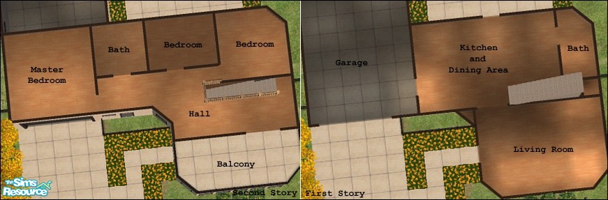 2x2 lot. Side entrance, spacious living room and upstairs balcony. Great for a small family! [Cyclonesue's invis. driveway is not needed for this lot but is recommended. :)] Hack and CC free. Enjoy, my lovelies!