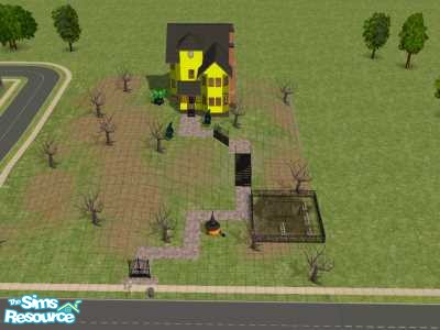 Folk Victorian style house all ready for Halloween. Custom walls and siding by me - Maddox97/BeansMama - these can be freely used for houses uploaded here at TSR once the contest is over as part of TSRAA.