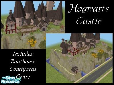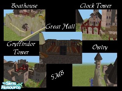 Copied from the game! Best I could fit on a lot. It includes - The boathouse, Courtyards, Owlry, Gryffindor Tower & other houses, The great Hall, & Classrooms. I forgot the dungeon :( sorry! But I put slytherin dorms with the others. Have Fun!