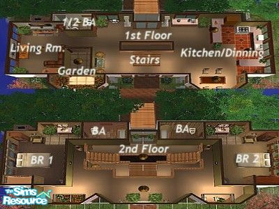 HP Designs has this very nice 2BR, 2.5BA, with small indoor garden, and river view backyard deck. This is a very nice place for a small Sim family, or Sim roomies. Hope someone enjoys it!