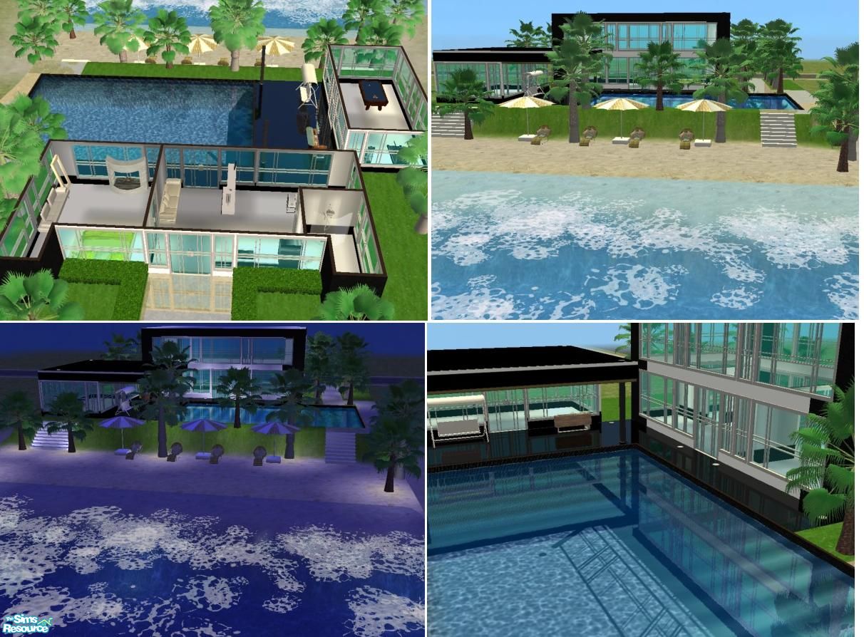 Modern beach house . Size 3x3 cost 71.859 $ . Been build in TwikiiIsland . Stair by Numenor , Column by 4ESF , Terrain paint by Justa Website & Margietka , Door & Widndows by Marylou together with ModTheSims .