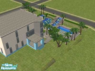 The third installment in my modern line. This house has a spectacular waterfall in the front that your visitors will just adore which flows into the pool.